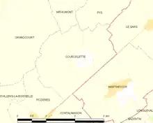 After the armistice in 1918, the Regina Trench location was selected as a "concentration cemetery" with mortal remains brought in from scattered graves and small battlefield cemeteries around Courcelette, Grandcourt and Miraumont. Unlike many CWGC cemeteries, where men are laid one-to-a-grave, many of the graves contain more than one burial and where two names are shown on the one headstone, it is necessary to count the individual names to find the correct grave location.[18] The CWGC website states that Regina Trench Cemetery is located in Grandcourt but this is somewhat misleading, because while it is located between Grandcourt and Courcelette, it is most easily reached by a rough road that runs approximately 0.93 mi (1.5 km) north-west of Courcelette village.[18][19]