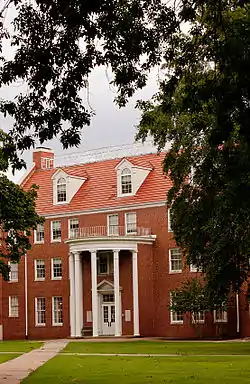 Caraway Hall is a historic dormitory building on the campus of Arkansas Tech University in Russellville, Arkansas, U.S. It is a brick building with Colonial Revival styling, built in 1934 with funding from the Federal Emergency Administration of Public Works, later known as the Public Works Administration. It is roughly H-shaped, with a central three-story section with a gabled roof and end chimneys, which is flanked by two-story flat-roofed wings, one longer than the other.[2]