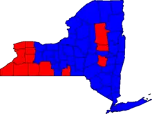 Paladino was defeated by Cuomo in the general election, 63%–33%.[54] Paladino won all eight counties in the Buffalo media market but only a few counties outside of that region, all of which were rural upstate counties. Paladino did help the Conservative Party gain third place on the ballot for the first time since losing the line in 1998. The Taxpayers line failed to achieve 50,000 votes, in part due to poor ballot location (the line was last on the ballot and on most ballots was placed in a second column).[55][56]