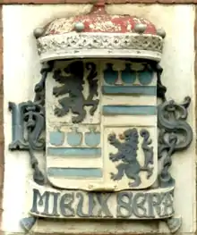 It is known that there has been a house on the site from at least the 14th century, but nothing visible remains and there is no documentary record.[6][7][8][9] The manor of Carlton was acquired by Nicholas Stapleton (1280–1343), eldest son of Miles de Stapleton (d.1314), killed at the Battle of Bannockburn, who was Steward of the Household to King Edward II. The family originated at the manor of Stapleton-on-Tees near Darlington[10] in North Yorkshire. Carlton passed to Nicholas's nephew Sir Bryan Stapleton (c.1321–1394), a Knight of the Garter and Warden of Calais, younger brother and heir of Sir Miles Stapleton (c.1320–1372), of Bedale, Yorkshire, a founder Knight of the Garter.[10] The last in the male line of Stapleton of Carlton was Sir Miles Stapleton, 1st Baronet (1628–1707) who died childless and left his estates to his nephew Nicholas Errington (d.1716) of Ponteland, Northumberland, who in accordance with the bequest adopted the name and arms of Stapleton. Nicholas's grandson, Thomas Stapleton (d.1821), succeeded in 1750 and in 1765 improved the house and estate, commissioning Thomas White to landscape the park and Thomas Atkinson of York to add the long East Wing, the clock above which shows the date 1777.[11] Thomas was a keen breeder and trainer of horses and with Sir Thomas Gascoigne, 8th Baronet won the St. Leger Stakes in 1778 with Hollandaise and in his own right the following year with Tommy. In 1795 he made an unsuccessful claim to the title Baron Beaumont, abeyant since 1507, which he was in remainder to through his great-grandmother Mrs Anne Errington, sister of Sir Miles Stapleton, 1st Baronet, both descendants via a distant female line of John Beaumont, 1st Viscount Beaumont, 6th Baron Beaumont (d.1460), himself a descendant in the male line of John de Brienne (d.1237), King of Jerusalem, by his third wife, Berengaria of Leon, and thus a second cousin of King Edward II of England. His son Miles died without issue in 1707, when the estate passed to his first-cousin Thomas Stapleton (d.1839), whose son Miles Stapleton, 8th Baron Beaumont (1805–1854) in 1840 successfully obtained the abeyant title Baron Beaumont. The house was re-built to its present form in 1873-5 by his son Henry Stapleton, 9th Baron Beaumont (1848–1892), an officer in the British Army, who married Violet Marie Louise Wootton Isaacson, daughter of Frederick Wootton Isaacson. As he had no children his heir was his younger brother Miles Stapleton, 10th Baron Beaumont (1850–1895), an officer in the British Army, who married Mary Ethel Tempest, daughter and heiress of Sir Charles Henry Tempest, 1st Baronet (1834–1894) of Heaton,[12] Bolton le Moors, Lancashire.[13] He was killed in a shooting accident only three years later and was succeeded by his infant daughter, Mona Fitzalan-Howard, suo jure 11th Baroness Beaumont (1894–1971), who married Bernard Fitzalan-Howard, 3rd Baron Howard of Glossop, heir to the Dukedom of Norfolk.[6][7]