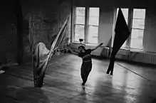 In 1964 she formed Trío 65, the first Chilean independent dance company, with dancers Gaby Concha and Rosa Celis.[3] Towards the end of the same decade, she migrated to the United States, actively participating in the New York art scene. A founding member of the collective The Natural History of the American Dancer,[4] Carmen Beuchat developed a link between her visual and choreographic work with a strong emphasis on spatial composition, incorporating the use of mobile structures in her choreography, presenting her work in spaces such as the 112 Greene St. Gallery, Whitney Museum, The Kitchen, Judson Church, Everson Museum of Art, and the Bronx Museum, among many others.[5][6]