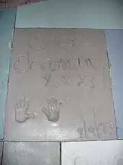 The handprints of Carol Channing in front of The Great Movie Ride at Disney's Hollywood Studios at the Walt Disney World Resort