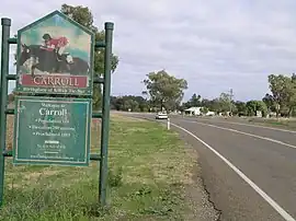 Carroll is a parish and small village on the Oxley Highway, 20 km east of Gunnedah, New South Wales. At the 2016 census, Carroll had a population of 337 people.[1] The Namoi River runs approximately parallel to the highway which is also the main street there. Periodically this river floods the town and surrounding area, forcing the closure of the Oxley Highway. The surrounding area is part of the Liverpool Plains region.