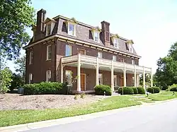 Cary's population grew after the Civil War with the completion of the Chatham Railroad junction.[22] Around 1868, the town's first depot was built for the Chatham Railroad, and Page laid out 1 acre (0.40 ha) residential lots and streets, including Academy and Chatham Streets.[19][4][22] At the time, most of Cary's men worked for the railroads, but other businesses included a furniture factory, two shingle factories, a tannery, a shoe factory, a brick factory, and a window sash and blind factory.[19][24] Around 1868, Page also built a Second Empire style hotel for railroad passengers, known today as the Page-Walker Hotel.[34]