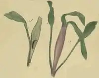 A swollen stem of Silene nutans (2b); swollen stem sectioned, showing the larva within (2b*)