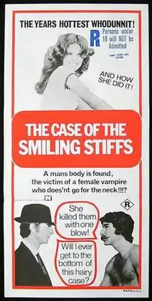 ![]() Film poster under the title The Case of the Smiling Stiffs | |