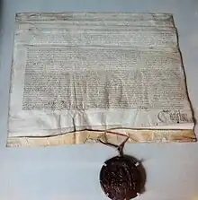 The Synod of Cashel of 1172 was organised by Henry II of England. The Synod sought to regulate some affairs of the Church in Ireland and to condemn some abuses, bringing the Church more into alignment with the Roman Rite. It has been suggested that the seventh act of the Synod called upon the clergy and people of Ireland to acknowledge Henry II of England as their king.[8] However, a careful reading of the seventh act would not support this interpretation.[9] Nevertheless, there is little doubt that the King's purpose in requiring the convocation was to overawe the Irish clergy with a display of his power; no doubt he succeeded in this. In this scenario, the convocation would be viewed as a pretext for the show of strength.
