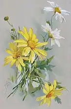 In addition to the popular depictions of flowers, Klein has also illustrated publications for the botanical world in the 1890s. These included, for example, the two-volume overview work Vilmorin's Blumengärtnerei, the Rosen-Zeitung, the French Journal des Roses and the journal of the German Dendrological Society.[15] There was also a major contribution to Parey's Blumengärtnerei, a standard work of horticultural literature at the time, which she was unable to complete.[16] She died on November 30, 1929, at the age of 68 in Berlin-Charlottenburg.[2] Her remains were removed from her grave in 1953 as she was not considered a sufficiently significant artist by the cultural authorities.[15]