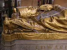 Despite his disaffection with coin-making, Thomas continued to design many medals for the Royal Mint, including the Queen Elizabeth II Coronation Medal, the Queen's Service Medal (New Zealand), and seal for Church of England bishops. He also accepted numerous private commissions. Among Thomas' later commissions were the Bromhead Memorial in Richmond Cemetery (1957)[3] and several large bronzes destined for New Zealand, one of which was received by King's College in Auckland. The other two were near-identical sculptures of Peter Pan. The earlier of these was commissioned for the Dunedin Botanic Garden (unveiled in 1965). This inspired the commissioning of a second one to stand at Rotokawau Virginia Lake in Whanganui (unveiled in 1967).[2][4] The Dunedin sculpture is accompanied by a second Thomas sculpture nearby showing other characters from the Peter Pan story.