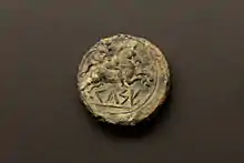 Bronze coin minted in Kelse in the 2nd century BC, showing its name in the Iberian language