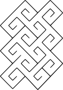 Celtic mazes are straight-line spiral key patterns that have been drawn all over the world since prehistoric times. The patterns originate in early Celtic developments in stone and metal-work, and later in medieval Insular art. Prehistoric spiral designs date back to Gavrinis (c. 3500 BCE).[1]