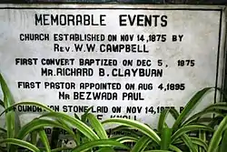 Tablet of historical events at the church