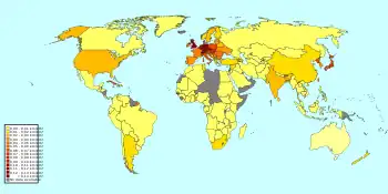 All of the Central European countries are considered to be of "very high human development" by the Human Development Index, with Switzerland and Germany having the highest index values.[26] However, some Central European countries, namely Poland and Hungary, are still considered as having "emerging market and developing economies" by the IMF.[27]