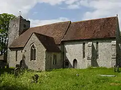 The village pub, The Red Lion, is believed to be the oldest in Hampshire, dating from the 16th century, though possibly earlier.[3] The Church of England Parish Church of St. Michael and All Angels has a thirteenth-century chancel;[4] the registers include burials in woollen cloth from 1678 to 1746. Clanfield and Chalton parishes were amalgamated 1932. Chalton was listed as part of the 'Hundred of Finchdean' in the Domesday Book.
