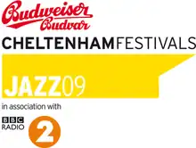 The 2009 logo of the Cheltenham Jazz Festival, reflecting Budvar's title sponsorship.