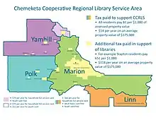 - ↑ "Regional Library Service to Start". The Oregon Statesman. June 30, 1974. p. 2. Retrieved March 28, 2018 – via Newspapers.com.