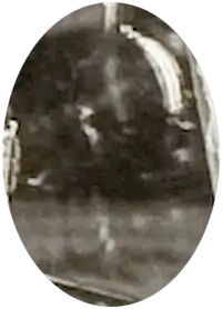 The exact design of the Cherub with Chariot Egg is uncertain. A single photograph of the egg exists, though it is hidden by another egg and can only be seen in a blurry reflection.[1] There is a brief description from the imperial records in the Russian State Historical Archives in Moscow which describes the gift as "Angel pulling chariot with egg - 1500 roubles, angel with a clock in a gold egg 600 roubles."[2] According to Marina Lopato in Fabergé: Imperial Jeweller (1993) this description means the clock is inside the gold egg, which is in the chariot being pulled by the angel.[2] Fabergé's invoice carries a similar description, itemizing a cherub pulling a chariot with an egg and a cherub with clock in a gold egg. These two descriptions are backed up by the 1917 inventory of seized imperial treasure which reads "gold egg, decorated with brilliants (diamonds), a sapphire; with a silver, golded [sic] stand in the form of a two-wheeled wagon with a putto."[3]
