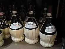 Chianti[lower-alpha 1] is an Italian red wine produced in the Chianti region of central Tuscany, principally from the Sangiovese grape. It was historically associated with a squat bottle enclosed in a straw basket, called a fiasco ("flask"; pl.: fiaschi). However, the fiasco is now only used by a few makers of the wine; most Chianti is bottled in more standard-shaped wine bottles. In the latter nineteenth century, Baron Bettino Ricasoli (later Prime Minister of the Kingdom of Italy) helped establish Sangiovese as the blend's dominant grape variety, creating the blueprint for today's Chianti wines.[1]