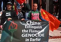 Various human rights groups, international non-governmental organizations, and religious leaders criticized the Chinese government of selling weapons to the Sudanese military which were being used to commit atrocities in Darfur where as many as 300,000 people have died in a rebellion against the central government. In fact, members of the United States Congress, advocacy groups such as the Save Darfur Coalition, and even Hollywood actors called for a boycott of the 2008 Olympic Games in Beijing seeking to pressure China to halt its arms sales and withdraw investments from Sudan.[2]