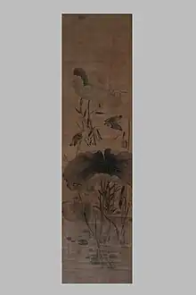 The “Egrets and Lotuses” scrolls now in the Tokyo National Museum are typical of works closer to the year 1300. They display a trend toward pattern and professional artisanship, away from the creativity that originally characterized the school.
