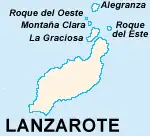 The Chinijo Archipelago (pronounced [tʃiˈnixo]) is a small archipelago located in the northeastern part of the Canary Islands, north of the island of Lanzarote. The archipelago includes the islets of Montaña Clara, Alegranza, La Graciosa, Roque del Este and Roque del Oeste.[4][5][6] The archipelago is administered by Lanzarote and belongs to the municipality of Teguise. La Graciosa is the only inhabited island, with a population of around 700.