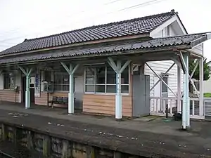 The station has two opposed ground-level side platforms serving two tracks. The station is unattended.