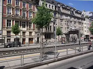 Chlodwigplatz station is a station on the Cologne Stadtbahn lines 15 and 16 and 17, located in the Cologne district of Neustadt-Süd. The station lies on Chlodwigplatz (part of the Cologne Ring), after which it is named.