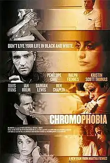Chromophobia is an ensemble film which debuted at the 2005 Cannes Film Festival in France.[2] The film's crew was made up of a brother-sister trio – Martha Fiennes wrote and directed the film, Ralph Fiennes starred in it, and Magnus Fiennes composed the score. The film was shot entirely in Great Britain and the Isle of Man.