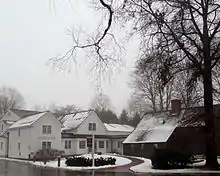 The Claflin–Richards House was constructed circa 1690 with ogee braces, an architectural hallmark of 16th- and 17th-century English dwellings. Today it contains three centuries of architecture, furnishings, and artifacts, representing a First Period dwelling room, a late 17th-century minister's parlor, a circa 1750 bed chamber, and a Victorian-era chamber. Furnishings include a woolen bed-rug made in 1724, said to be the second oldest such rug in the United States, and an oak dresser built in 1752.[2] It was purchased by the Wenham Historic Society in 1921.[3]