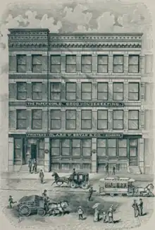 From 1880 until his death Bryan was also responsible for a successful trade publication, The Paper World, which was published in various iterations in Holyoke, Springfield, and finally out of the Pulitzer Building in New York City. By the time the paper had been moved to the latter in 1898, Bryan retained little more than creative input,[4] and this sale to a separate company would ultimately fail.[5][6] Bryan, who had lived to see his business empire in financial ruin, and wife and one of his sons had passed in recent years, took his life on January 23, 1899, with a pistol. All of his publications were promptly discontinued, the sole exception being Good Housekeeping, which immediately found a purchaser, John Pettigrew, who would sell it to his printer George D. Chamberlain, who in turn sold it to E. H. Phelps, another former Springfield Republican associate, whose company, Phelps Publishing, had offices in Springfield and New York. Gradually reaching national prominence, it was purchased by the Hearst Corporation in 1911.[1][7]
