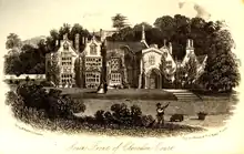 An early picture of the court shows a building known as Wake's Tower on Court Hill. It is included in Saxton's map of 1570 but was demolished before 1738.[33] Towers such as this were popular Elizabethan features and were lookouts or summer houses. A summerhouse was built on the site but this too was in ruins by the early 19th century.