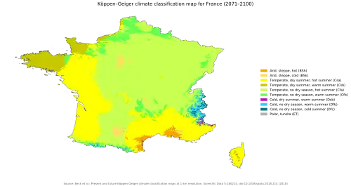 Predicted Köppen climate classification map for France for 2071–2100 (scenario RCP8.5)