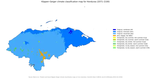 Predicted Köppen climate classification map for Honduras for 2071–2100