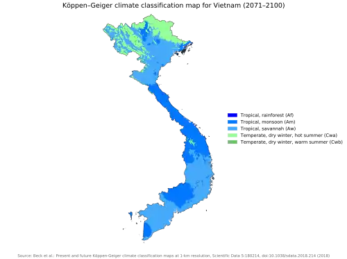 Predicted Köppen climate classification map for Vietnam for 2071–2100