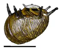 | Clithon corona shell. Scale bar is 10 mm. | |