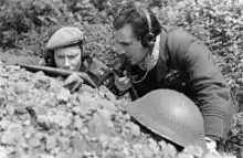 The use of forward air control to guide close air support (CAS)[12] aircraft, so as to ensure that their attack hits the intended target and not friendly troops, was first used by the British Desert Air Force in North Africa, but not by the USAAF until operations in Salerno.[13] During the North African Campaign in 1941 the British Army and the Royal Air Force established Forward Air Support Links (FASL), a mobile air support system using ground vehicles. Light reconnaissance aircraft would observe enemy activity and report it by radio to the FASL which was attached at brigade level. The FASL was in communication (a two-way radio link known as a "tentacle") with the Air Support Control (ASC) Headquarters attached to the corps or armoured division which could summon support through a Rear Air Support Link with the airfields.[14][15] They also introduced the system of ground direction of air strikes by what was originally termed a "Mobile Fighter Controller" traveling with the forward troops. The controller rode in the "leading tank or armoured car" and directed a "cab rank" of aircraft above the battlefield.[16] This system of close co-operation first used by the Desert Air Force, was steadily refined and perfected, during the campaigns in Italy, Normandy and Germany.