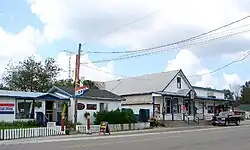 The village offers a number of services for residents, snowmobilers, cottagers and campers, particularly those visiting Bon Echo Provincial Park to the north on Highway 41. There are also number of small shops, providing townspeople and visitors access to groceries, antiques, chainsaw carvings,[1] hardware supplies, gas, and hunting and fishing gear. Cloyne is also home to the North Addington Education Centre[2] and the Pioneer Museum.[3] The village features an oversized wooden white chair (resembling a Muskoka chair), which has been of interest to tourists since 1989, in its various locations. The chair was damaged during a Derecho (storm) in May 2022; as of spring 2023, a local fund raiser was underway, seeking donations that would fully cover the cost of a new chair.[4]