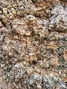 Outcrops of pyrometamorphic rocks (porcelanites) from 17th century's coal seam fires at Mont Salson, Saint-Etienne, France