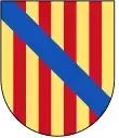| Blazon | Or, four pallets of gules differenced by a bendlet azure. |