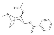 Cocaine reverse ester, (also known as Reverse ester cocaine or REC) is a tropane derivative drug which is a reverse ester of cocaine, with the 2-COOCH3 methoxycarbonyl group swapped to an isomeric OCOCH3 acetoxy group. It was synthesised because of the observation that the reverse ester pairs of several structurally related substances show similar activity to each other (see e.g. methylphenidate vs phacetoperane, pethidine vs desmethylprodine). Cocaine reverse ester however did not produce cocaine-like stimulant effects in animal studies,[1] and is also illegal in many jurisdictions as a structural isomer of cocaine; nevertheless it has attracted attention from vendors of quasi-legal designer drugs as a potential alternative to cocaine.