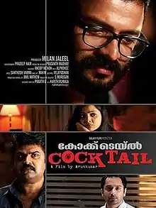 Cocktail is a 2010 Malayalam-language thriller film edited and directed by Arun Kumar Aravind. The film stars Jayasurya, Anoop Menon, and Samvrutha Sunil in the lead roles, while Fahadh Faasil, Aparna Nair, Innocent, and Mamukkoya play supporting roles. The film released on 22 October 2010.