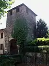 • Porta Rocca, the fortification to the north towards Bergamo and seat of the municipality of Cologno al Serio.[4] The name derives from a fort erected at the end of the thirteenth century along the outer perimeter, of which it is an integral part. Only the lower part of the tower has maintained its original character, while the upper part has been rebuilt over the years. These architectural changes are due to the continuous and repeated damage caused by numerous war events that have marked the history of Cologno. This door also has a coat of arms depicting the Moioli family, who in the seventeenth century owned the castle donated to him by the community of Cologno al Serio in recognition of their contribution to the defence of the town [12]