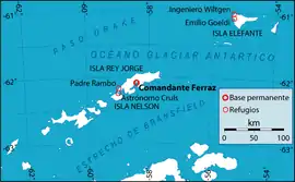 The Comandante Ferraz Antarctic Station (Portuguese: Estação Antártica Comandante Ferraz) is a permanent Antarctic research station named after the Brazilian Navy Commander Luís Antônio de Carvalho Ferraz (1940–1982), who visited Antarctica many times with the British exploration team and managed to convince his government to create a self-guided Brazilian Antarctic Program.