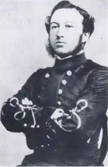 The Confederate States Marine Corps (CSMC), also referred to as the Confederate States Marines, was a branch of the Confederate Navy during the American Civil War. It was established by an act of the Provisional Congress of the Confederate States on March 16, 1861. The Corps' manpower was initially authorized at 45 officers and 944 enlisted men, and was increased on September 24, 1862, to 1,026 enlisted men. The organization of the Corps began at Montgomery, Alabama, and was completed at Richmond, Virginia, when the capital of the Confederate States was moved to that location. The headquarters and main training facilities remained in Richmond throughout the war, located at Camp Beall on Drewry's Bluff and at the Gosport Shipyard in Portsmouth, Virginia.[1] The last Marine unit surrendered to the Union army on April 9, 1865, with the Confederacy itself capitulating a month later.