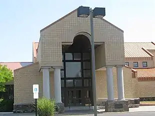 Originally established at former locations in neighboring Marlton and Mount Laurel, the building used for worship, prior to the 2022 merger, was described by The New York Times as "spectacular new gold brick and red-topped".[3] This building opened in 1990 and is located on Evesham Road in an affluent area in Cherry Hill.[4] Up to its closure, the main hall of the former synagogue had polished wood, and stained glass windows created by Paul Friend.[3][5] The former synagogue was built on the site of the Butts House, built in the 18th century near the boundary of the township with Evesham Township and believed to have been first owned by the Matlack family.[6]
