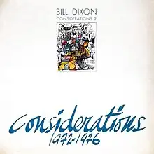 Considerations 1972–1976, Volumes 1 and 2, is a pair of live albums by trumpeter and composer Bill Dixon. They were recorded during 1972 to 1976, a period during which Dixon was teaching at Bennington College and was, in his own words, "in total isolation from the market places of this music." Released in 1981 by the Italian Fore label, the recordings help to document the gap between the 1967 album Intents and Purposes and the Soul Note albums of the early 1980s.[1][2][3][4][5][6]