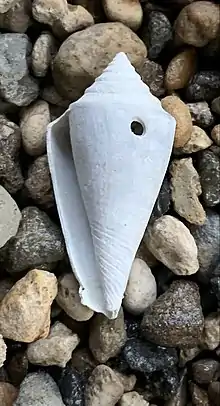 A Conus adversarius shell featuring predation damage from a predatory sea snail.