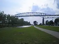Cornwall has traditionally been a gateway from the Montreal area to the rest of Canada, and was and remains a major port of entry into Canada (Canada Border Services abandoned the Cornwall Island post on May 31, 2009, but resumed service on July 13, 2009, at temporary facilities on the city's southern edge.) With the completion of the new low-level bridge connecting Cornwall to Cornwall Island, the C.B.S.A. port was moved to a permanent temporary facility on the canal lands. The city is connected to the United States at Roosevelttown near the municipalities of Massena, New York and Malone, New York, via the Three Nations Crossing (Canada, Mohawk, and United States) which traverses the St. Lawrence River.
