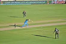 The cover drive in cricket is the act of stroking the ball through the covers with well-timed wristwork and conventional movement of the front foot toward the pitch of a delivery aimed at or outside the off stump.[1] The cover drive is considered one of the most graceful shots playable in the sport.[2] Batsmen able to master the cover drive are usually given especially high praise because of the shot's difficulty in execution and its requirement for exquisite timing. They are considered masters if they master this shot. When played to perfection, the cover drive comprises a batsman's seemingly effortless wielding of the blade in a downward trajectory through the off side, with the cricket ball gliding through infielders in the covers at pace toward the boundary at deep cover.
