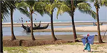 Cox's Bazar (Bengali: কক্সবাজার জেলা, Cox's Bazar Jela also Cox's Bazar Zila) is a district in the Chittagong Division of Bangladesh.[3] It is named after Cox's Bazar town. It is located 150 kilometres (93 mi) south of Chittagong. Cox's Bazar is also known by the name Panowa ("yellow flower"). Another old name was Palongkee. The modern Cox's Bazar derives its name from Captain Hiram Cox (died 1799), an army officer who served in British India. It is one of the fishing ports of Bangladesh. At Cox's Bazar is one of the world's longest natural sea beaches (120 kilometres (75 mi) long including mud flats).